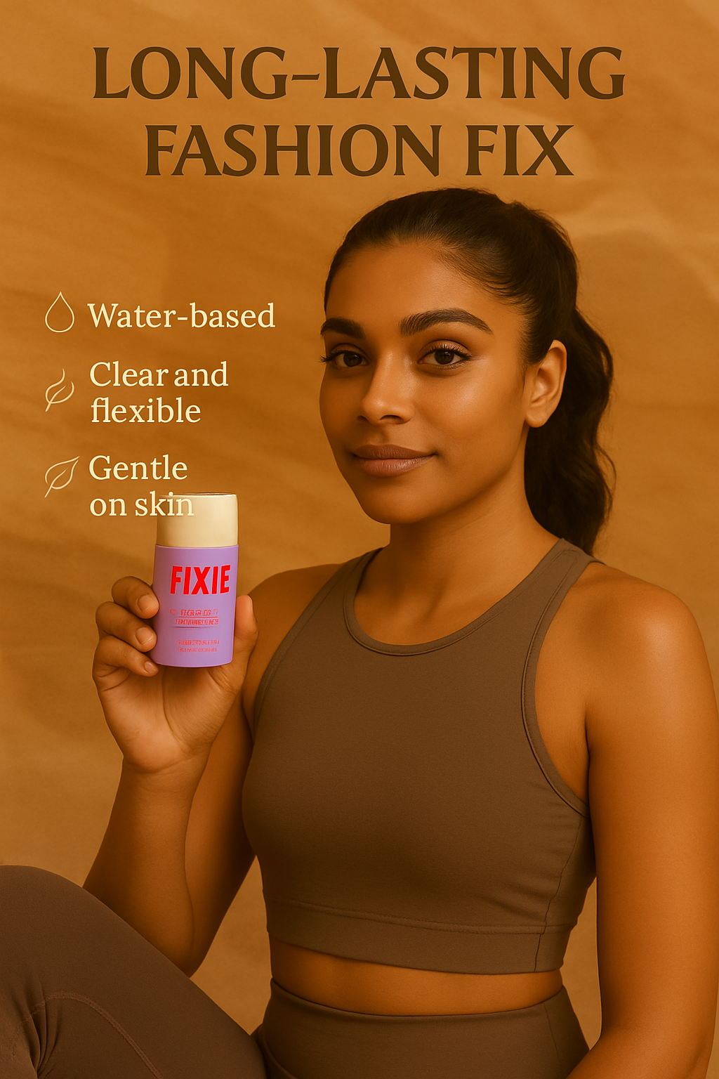 Stay secure, feel free. Fixie is a skin-safe, water-based body adhesive that holds your clothes in place—no slips, no discomfort, just all-day confidence.